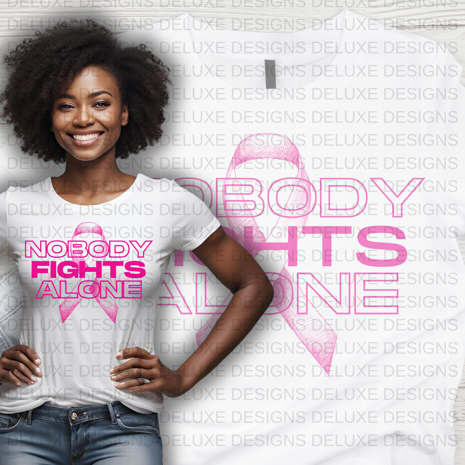 Show your support for warriors and fighters with our editable "Nobody Fights Alone" PNG design. Featuring a bold, empowering quote alongside a customizable ribbon, this design is perfect for breast cancer awareness, colon cancer, mental health advocacy, and countless other causes. Easily change the ribbon colors to represent the cause close to your heart using Canva. Use this versatile design on T-shirts, tumblers, coffee mugs, and more!