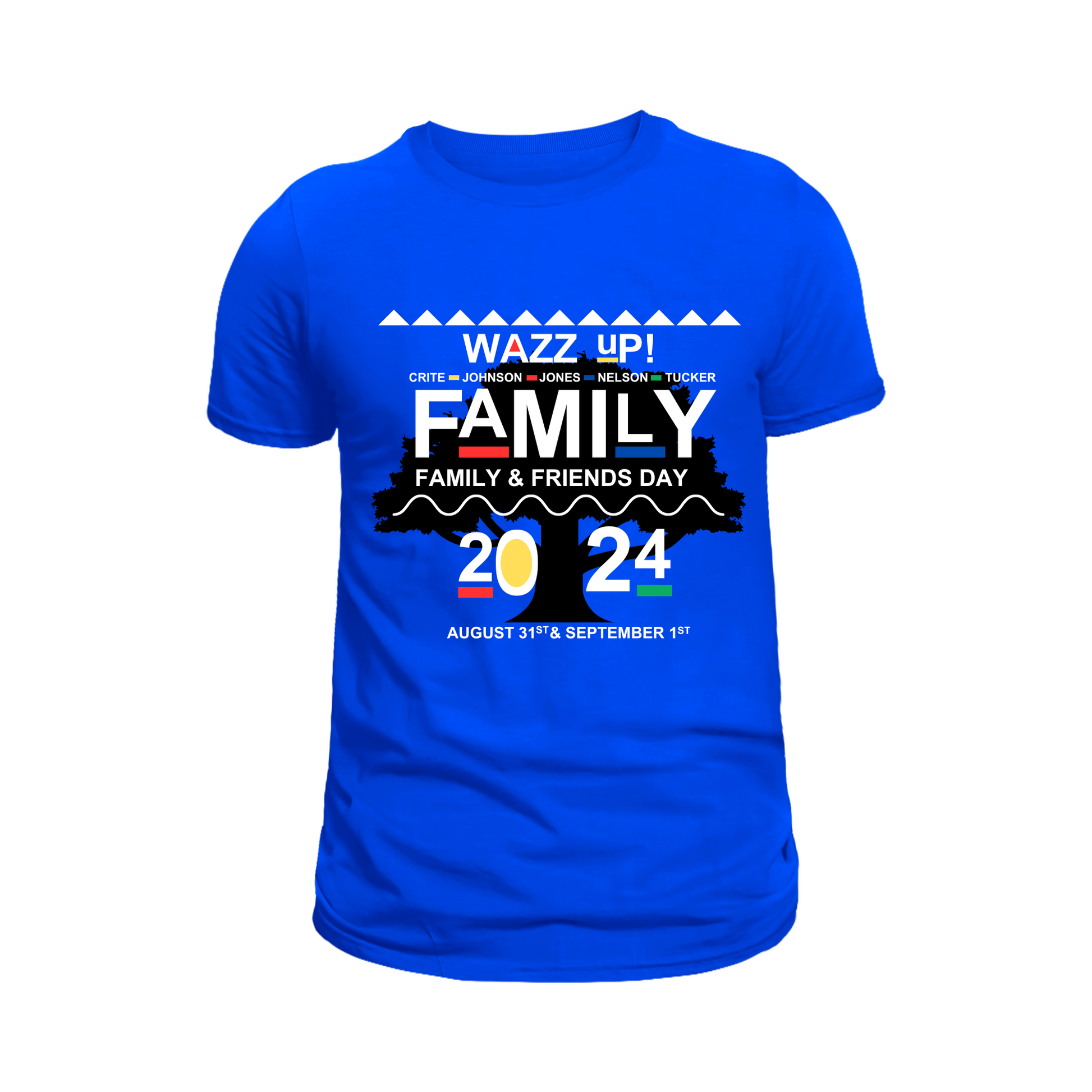 Celebrate your next family reunion or "Family and Friends Day" in style with our exclusive "Martin" sitcom-themed t-shirt design! Featuring the iconic "Wazz Up!" phrase, a customizable section for family names, a family tree, and space for the dates, this design is perfect for creating memorable and personalized apparel for your special event.