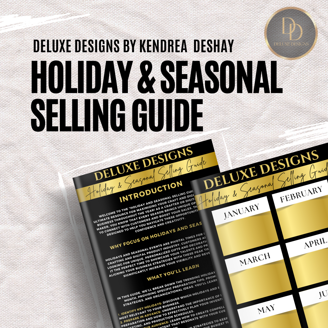 Transform your crafting and digital product business with our Holiday and Seasonal Selling Guide E-Book! This comprehensive guide is your secret weapon for staying ahead of the competition and maximizing sales throughout the year. Packed with insights, detailed strategies, and actionable tips, this e-book is designed to help you thrive during every holiday season.
